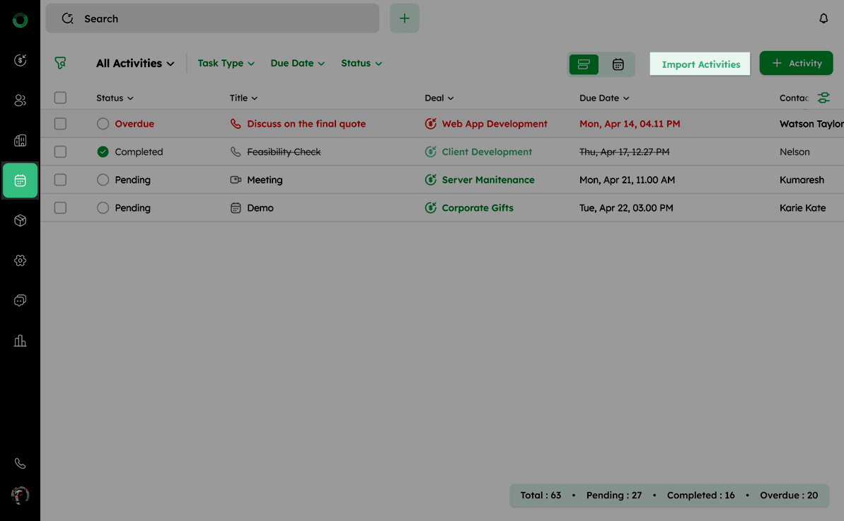 Click the Import Activities button located from the top right corner.
