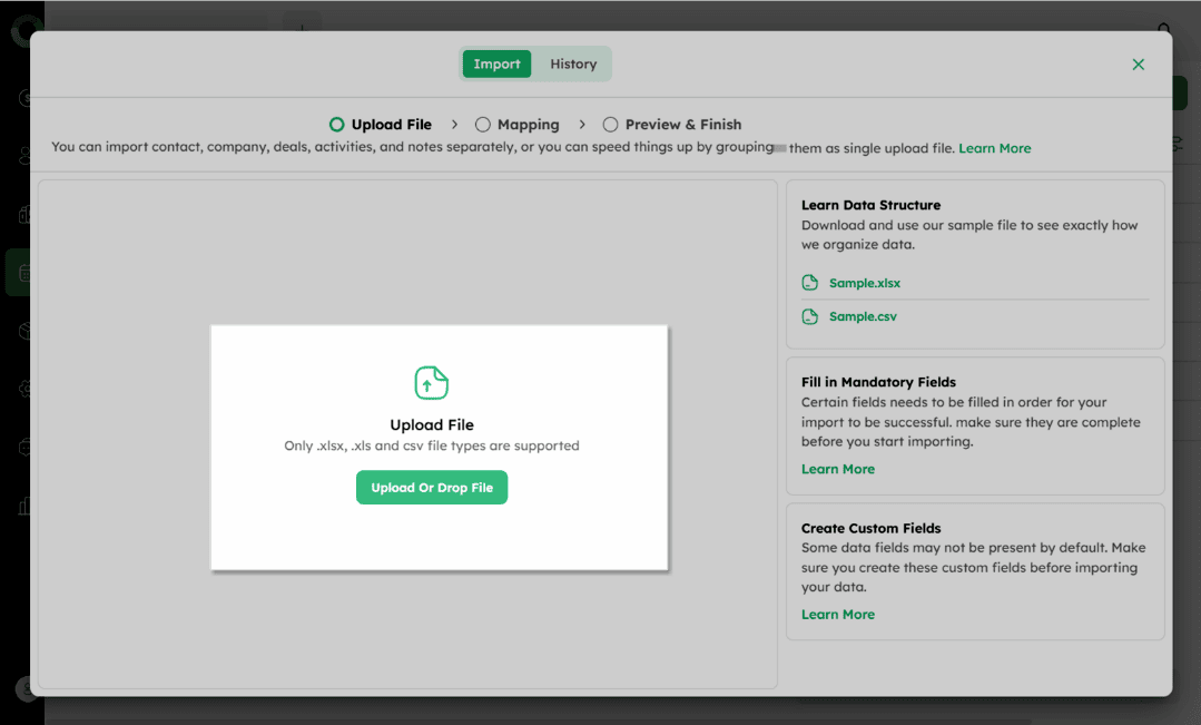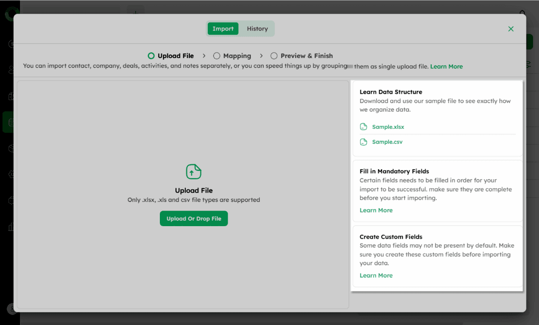 After uploading, map your file's fields to the system's field structure.