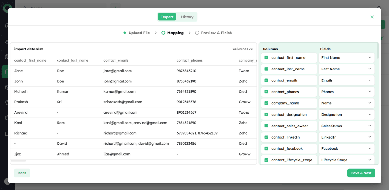 Review the mapped data, make necessary adjustments, and click Save & Next to move to the preview page.