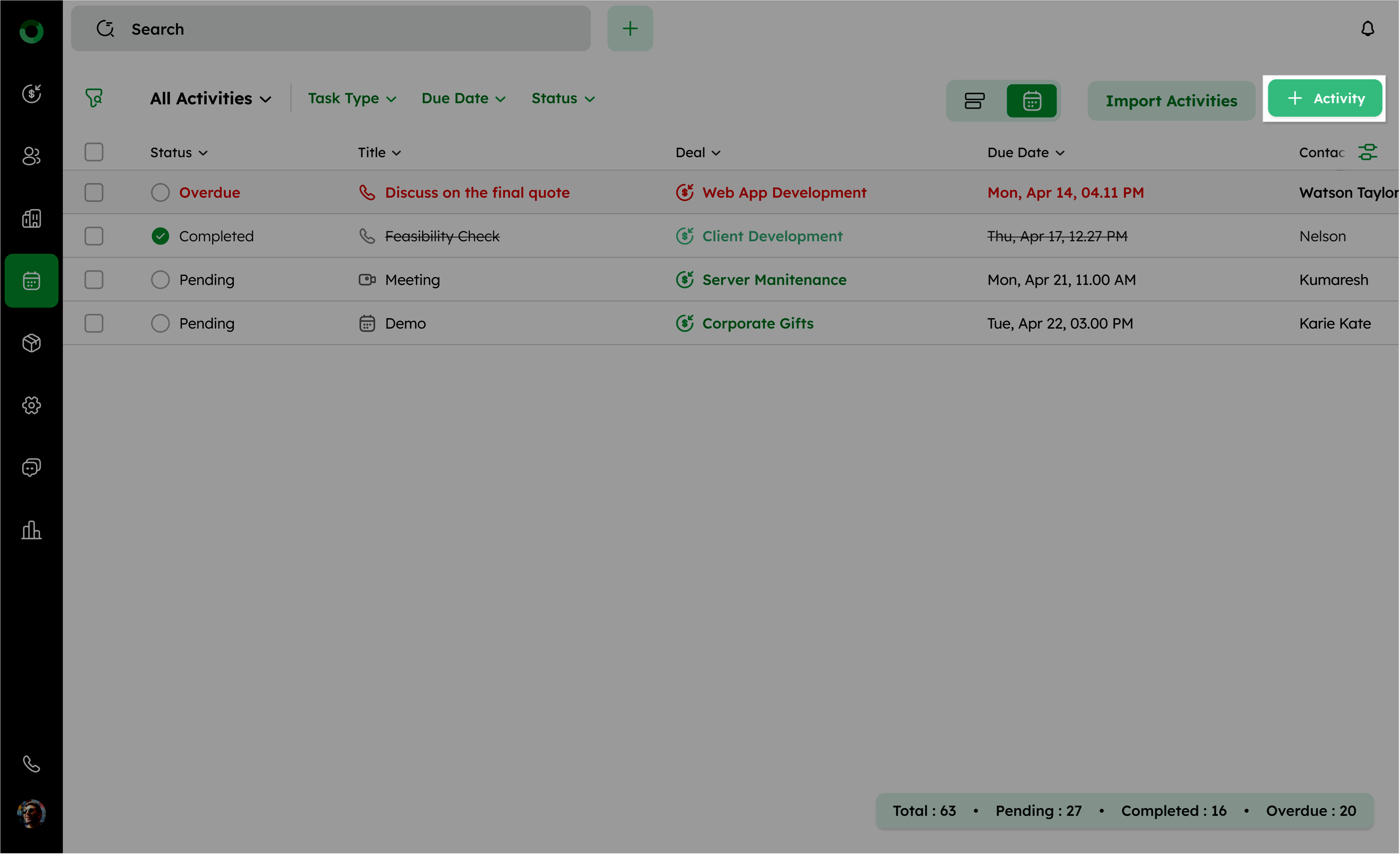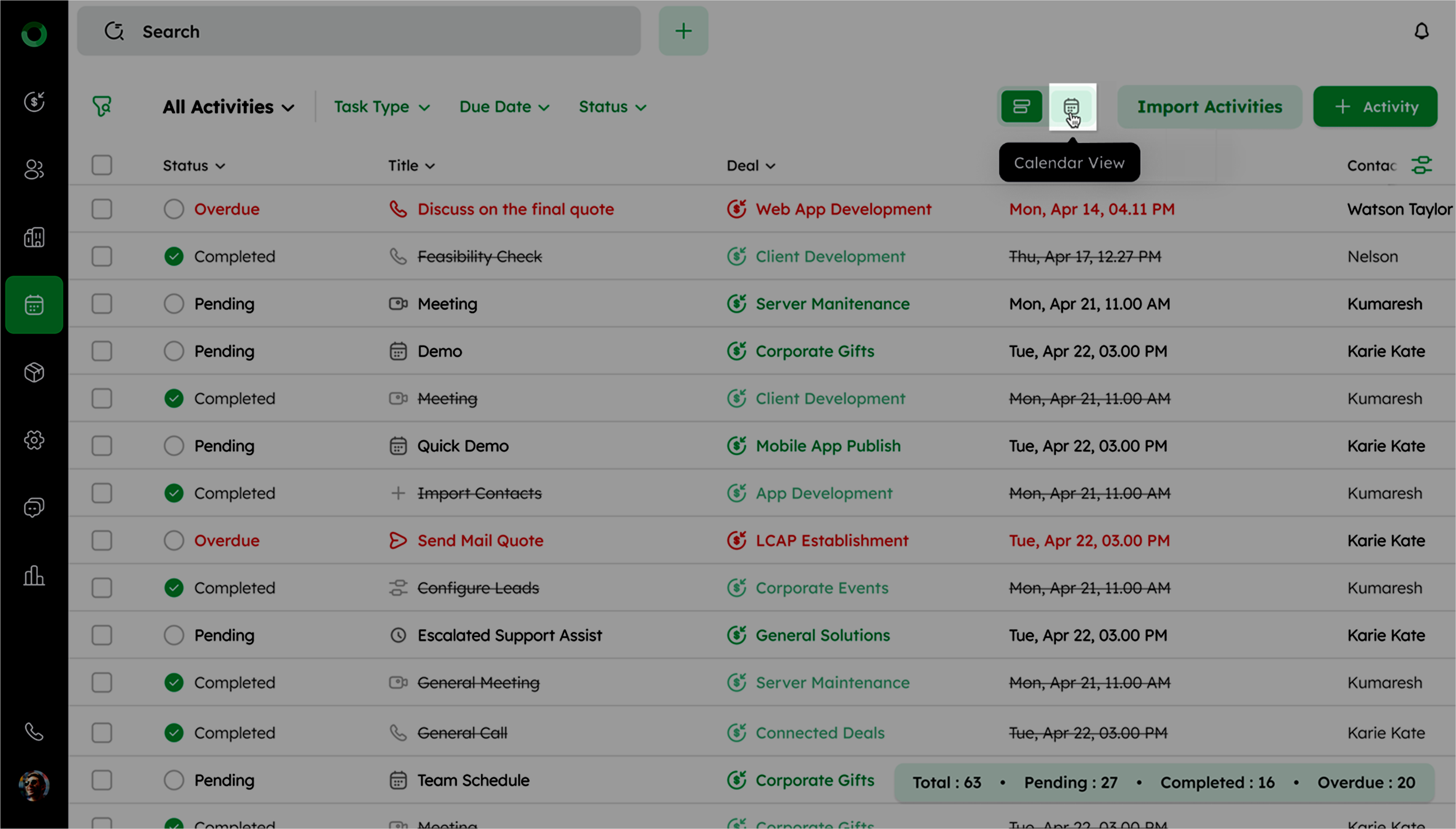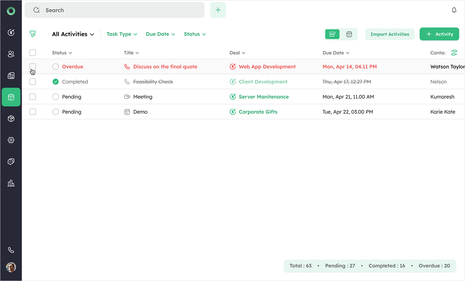 Managing activities efficiently is a key to stay organized. You can quickly mark activities as complete in Activity List View, Bulk Actions, Activity Summary, Calendar View, Global Search, Deal Summary or directly from Deal, Contact, or Company detail pages. Each approach offers a quick way to update task statuses and keeps your workflow smooth and up to date.