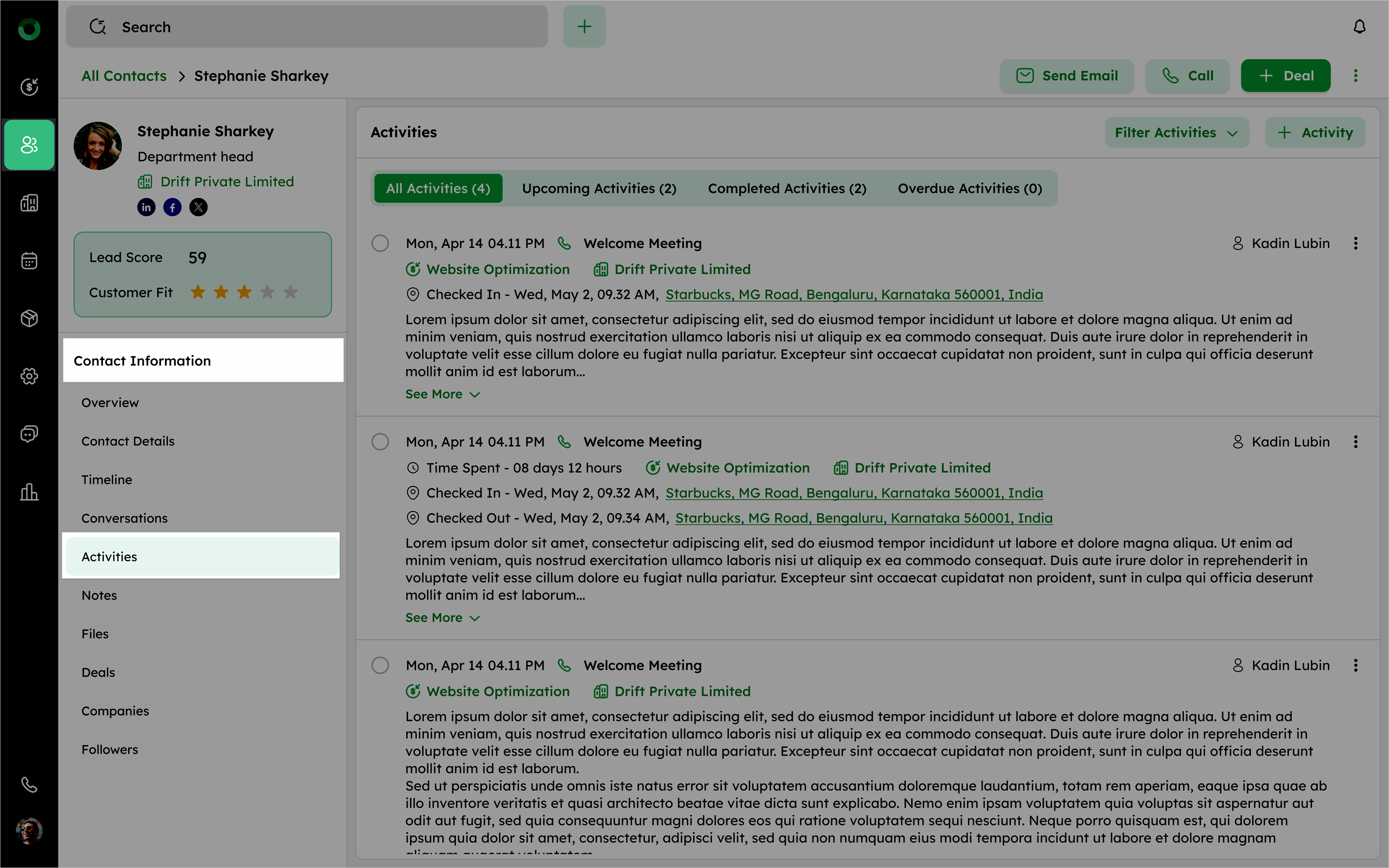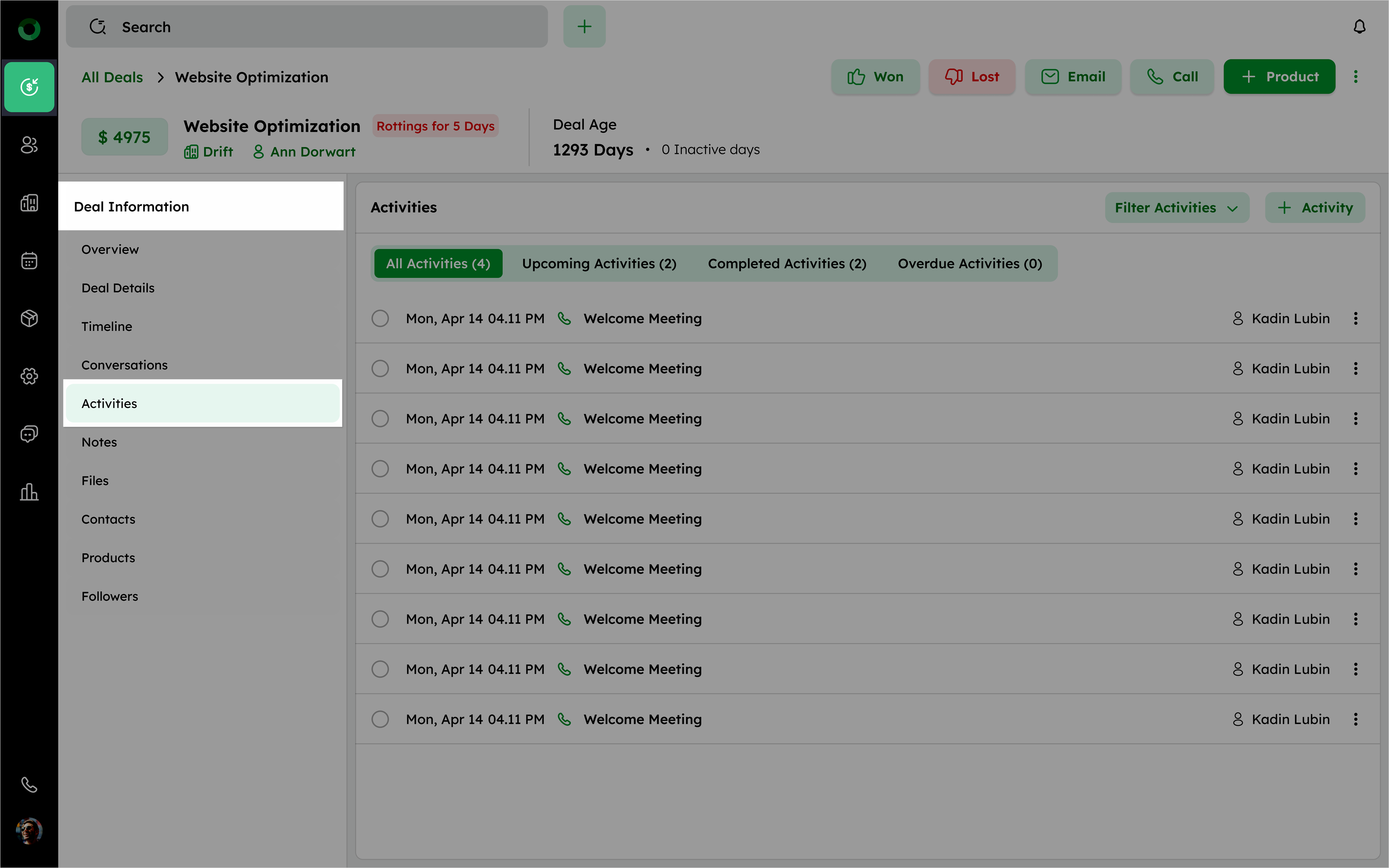 In the Deal Detail Page, go to the Activities tab under the Deal Information.