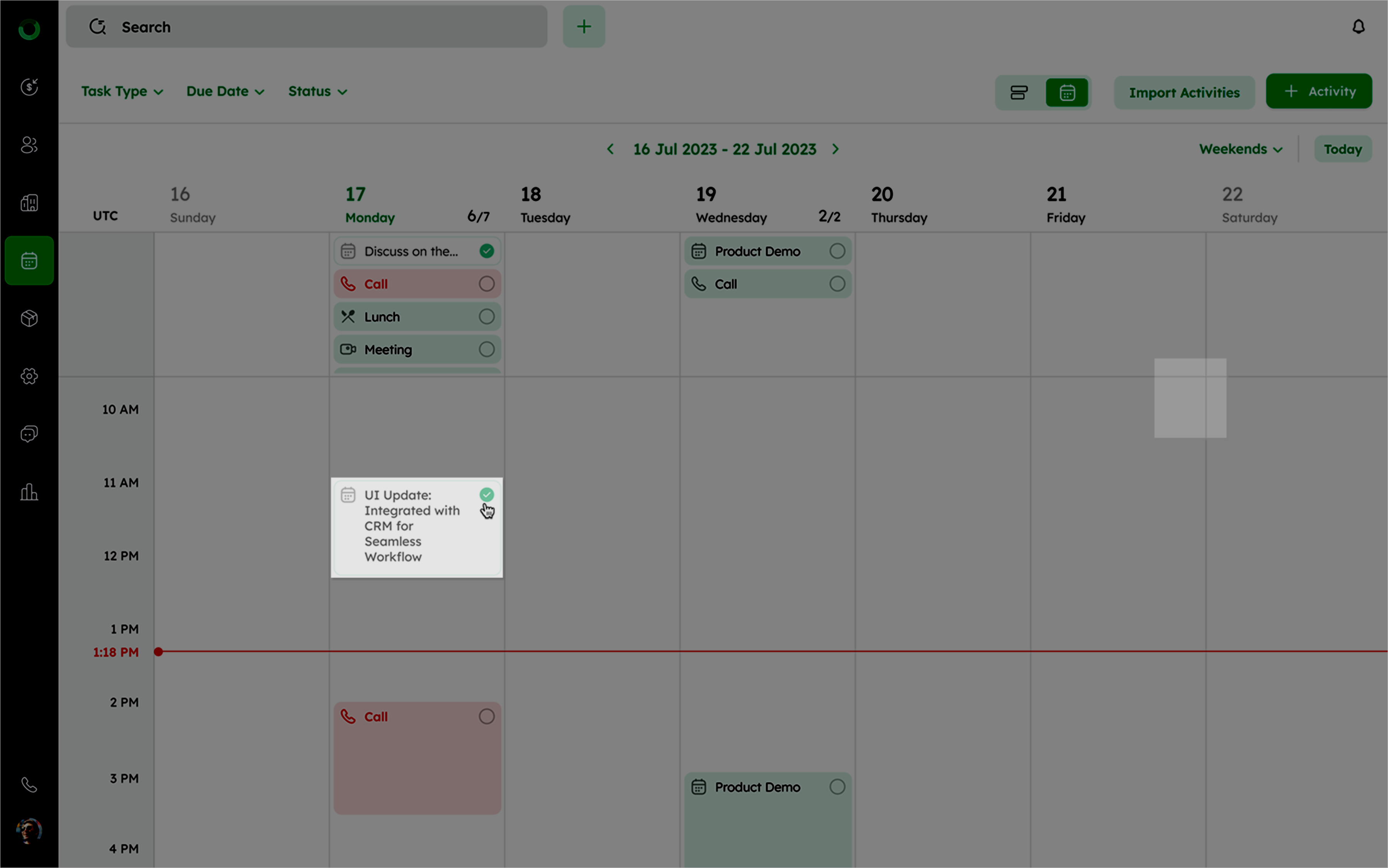 - Check the box to mark the activity as completed. This allows for quick status updates without leaving the view, ensuring efficient task management.