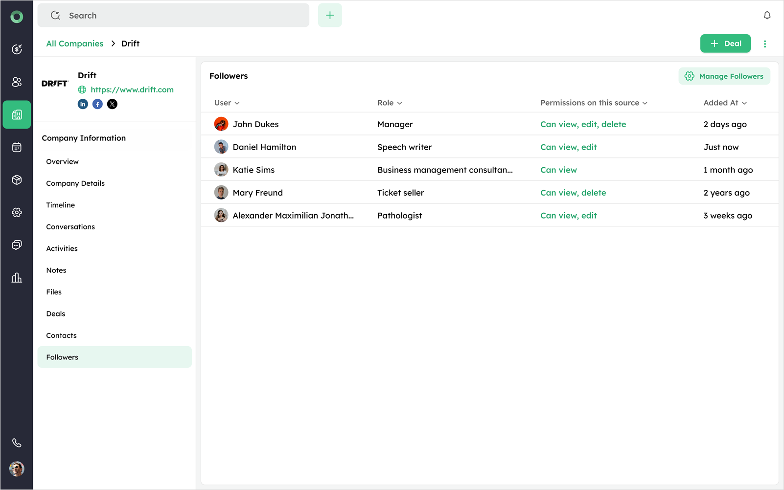 - Use the Manage Followers button to add or remove followers as needed.