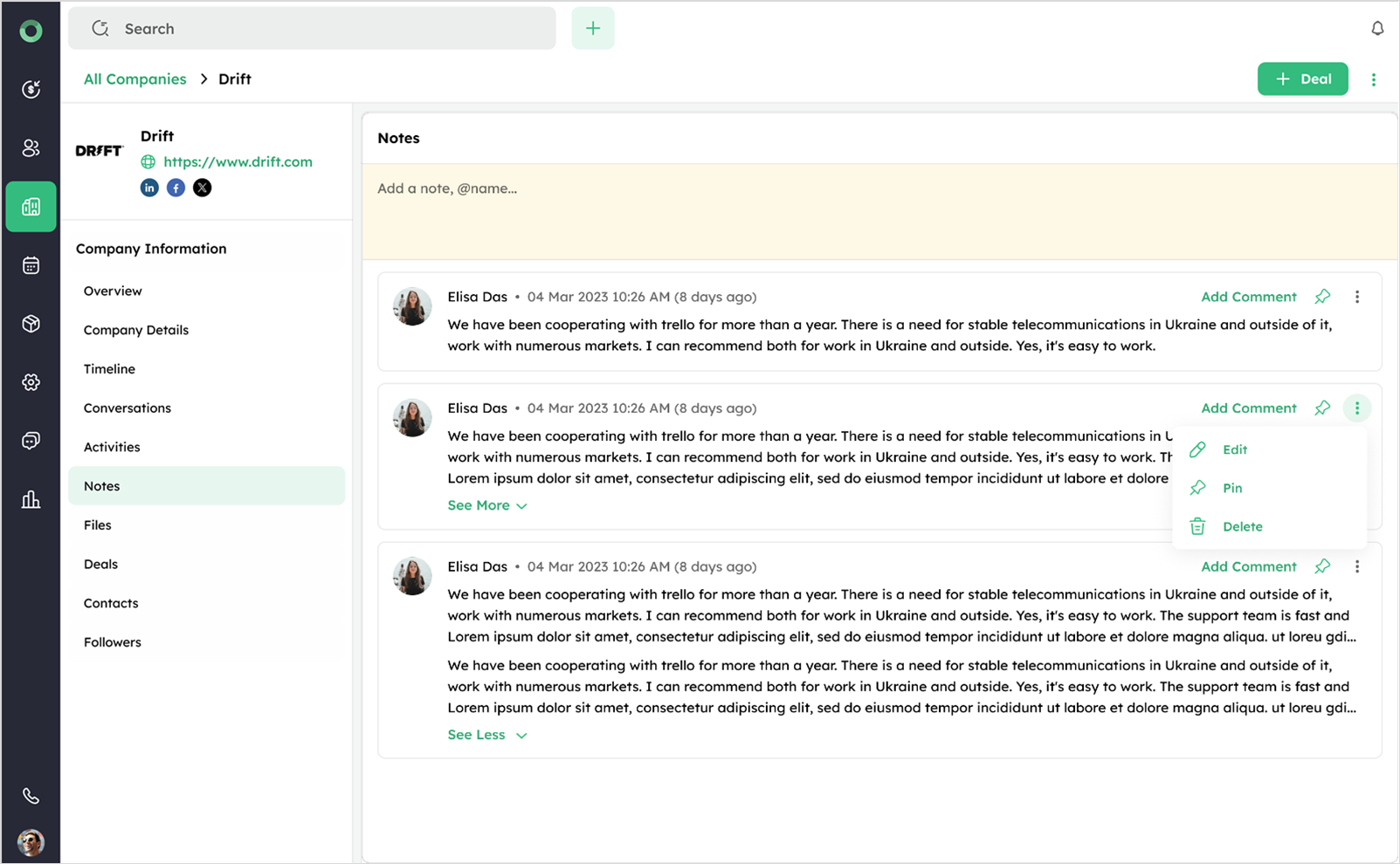 | Note Edited | An existing note about the company was updated with revised details. |