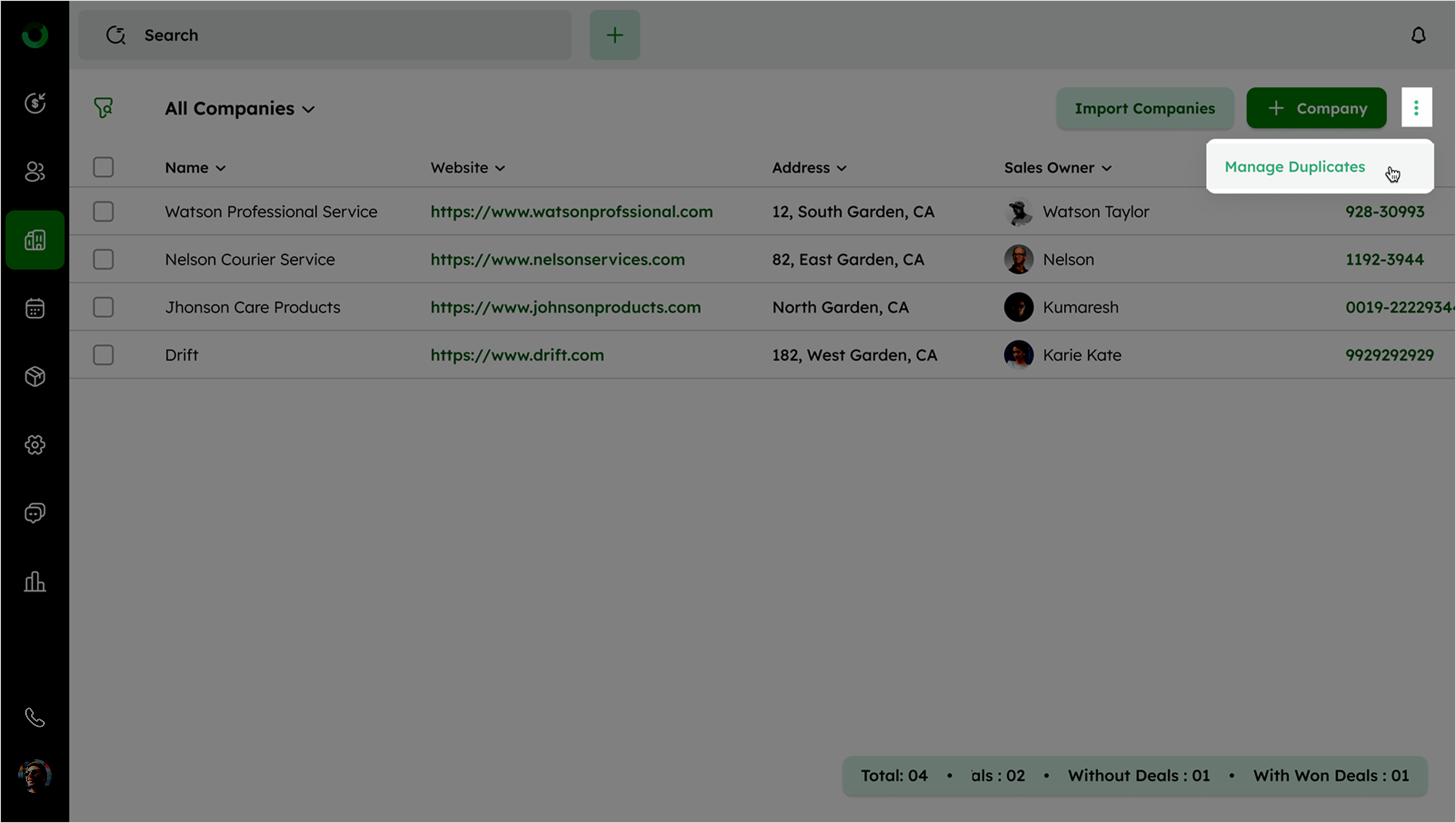To identify and manage duplicate company records in Twozo, follow these steps: