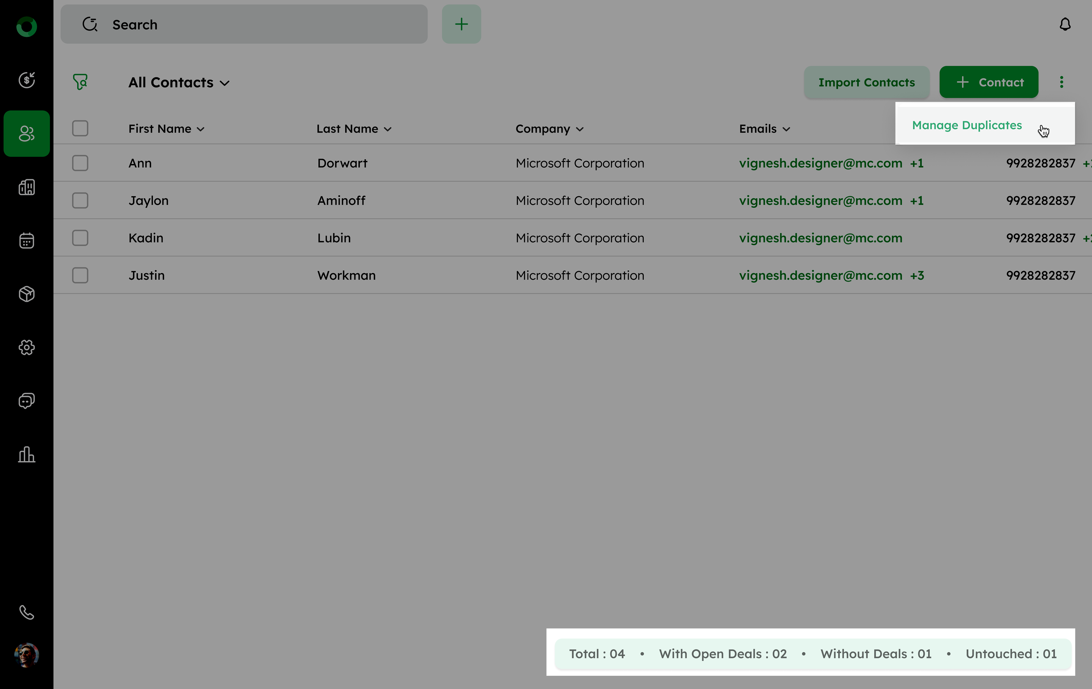 The Manage Duplicate feature in Twozo helps you to maintain an accurate contact database by identifying and merging duplicate entries based on matching information.