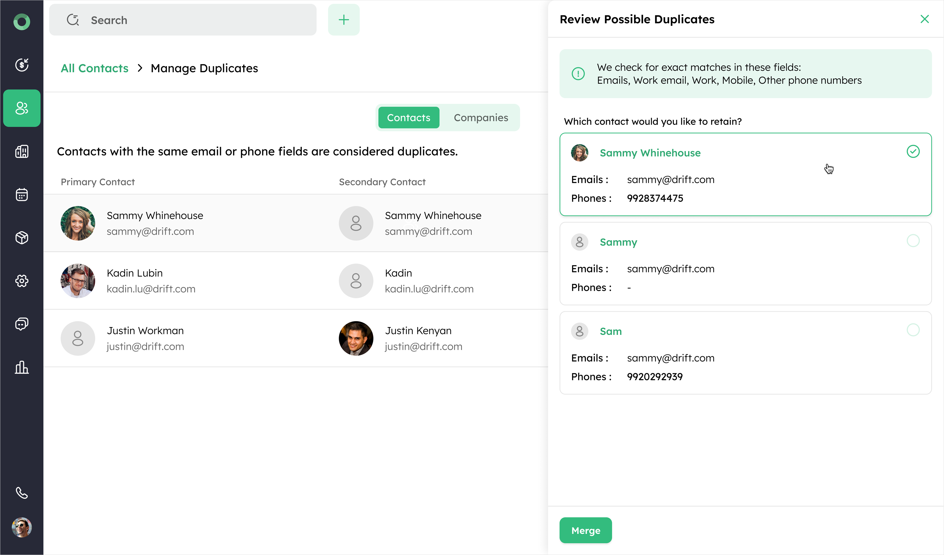 Tip: Regularly merging duplicate contacts prevents data fragmentation and keeps sales and communication workflows accurate.