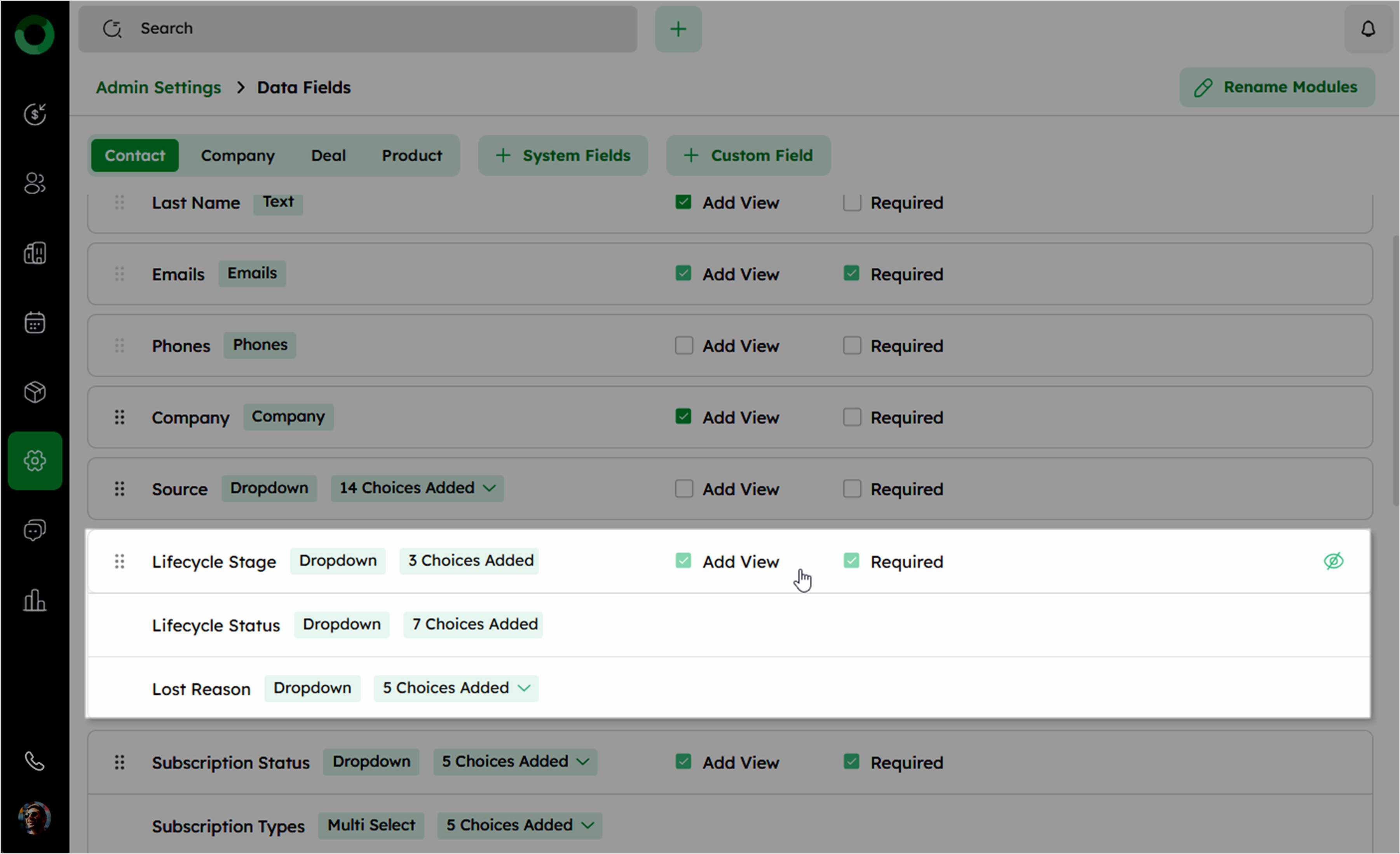 Add or remove custom or system fields as needed.