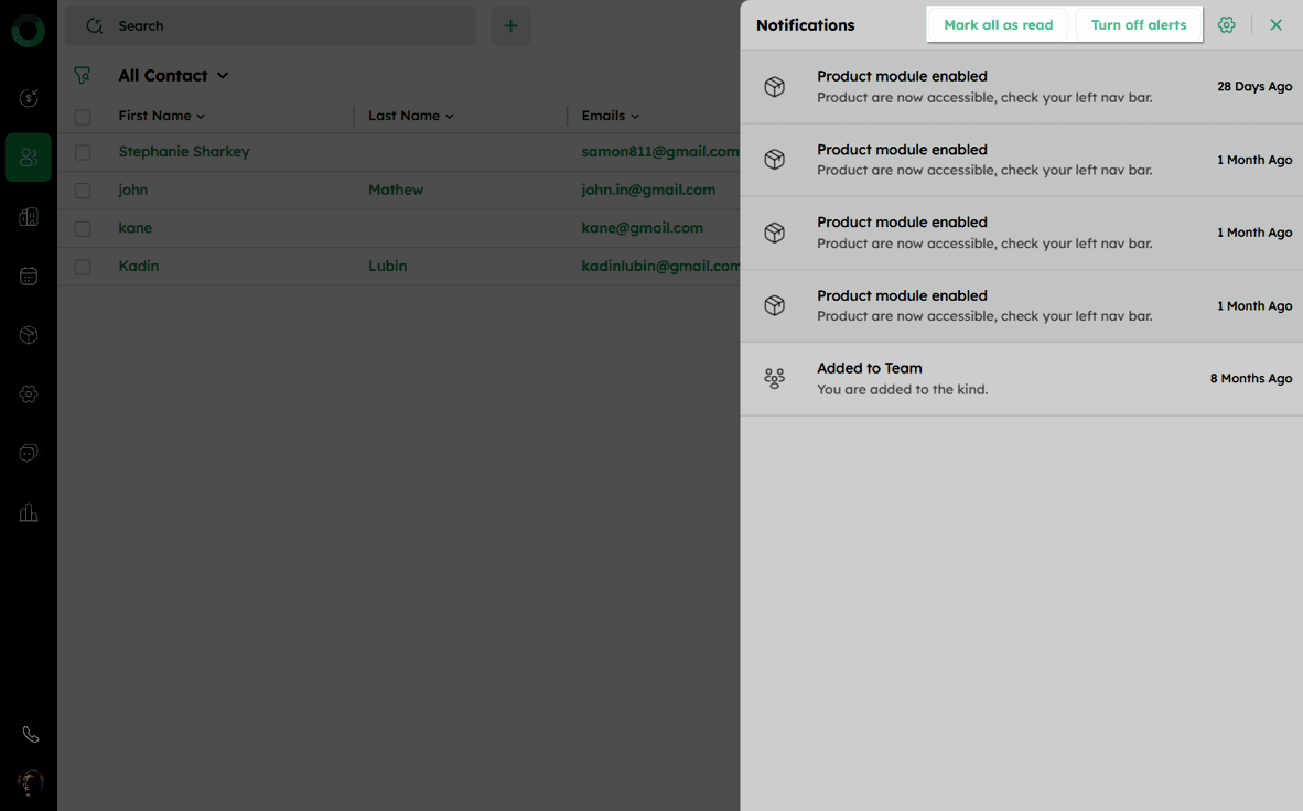 These notifications alert you whenever a contact, company, deal, or product is assigned or transferred to you.
