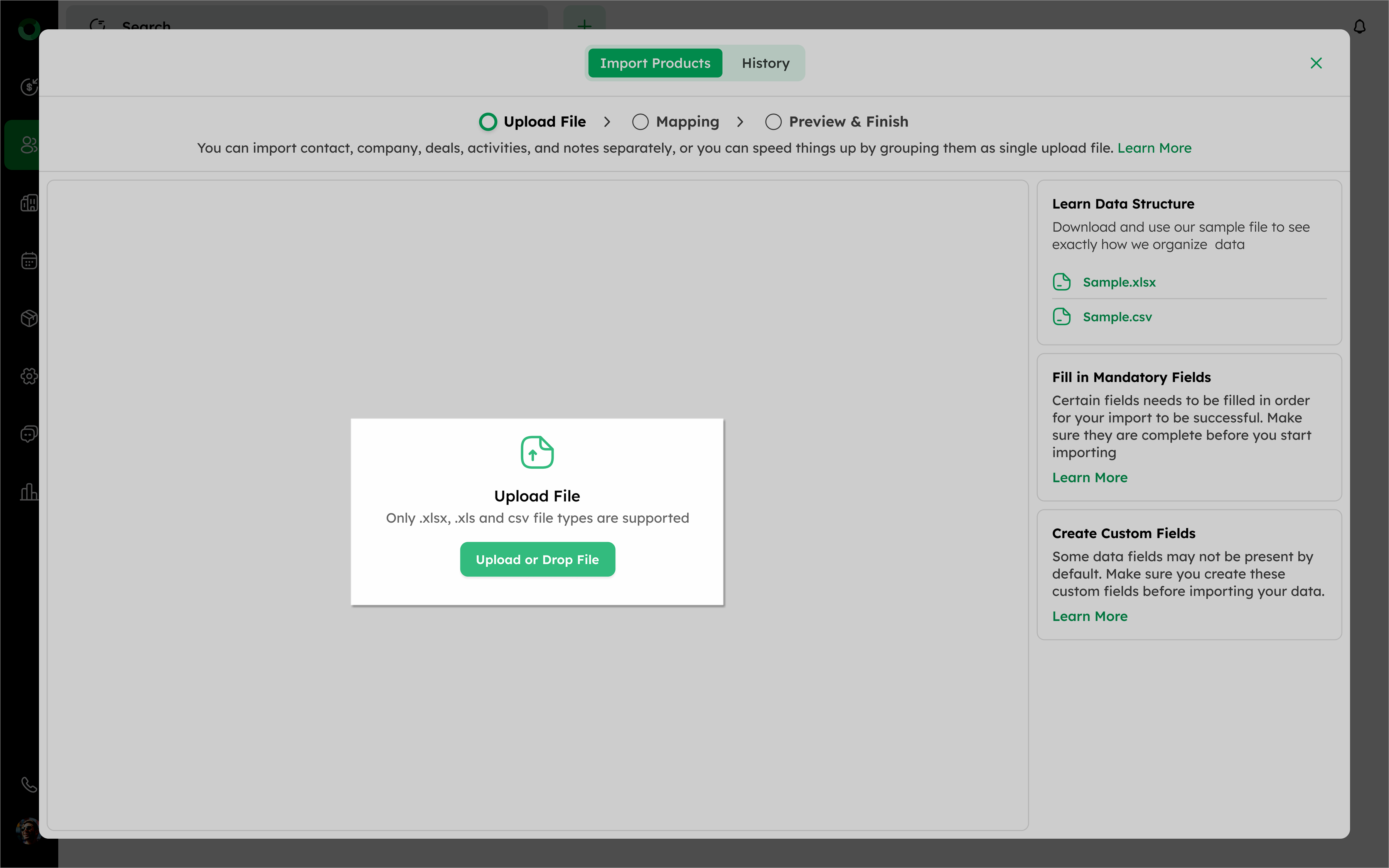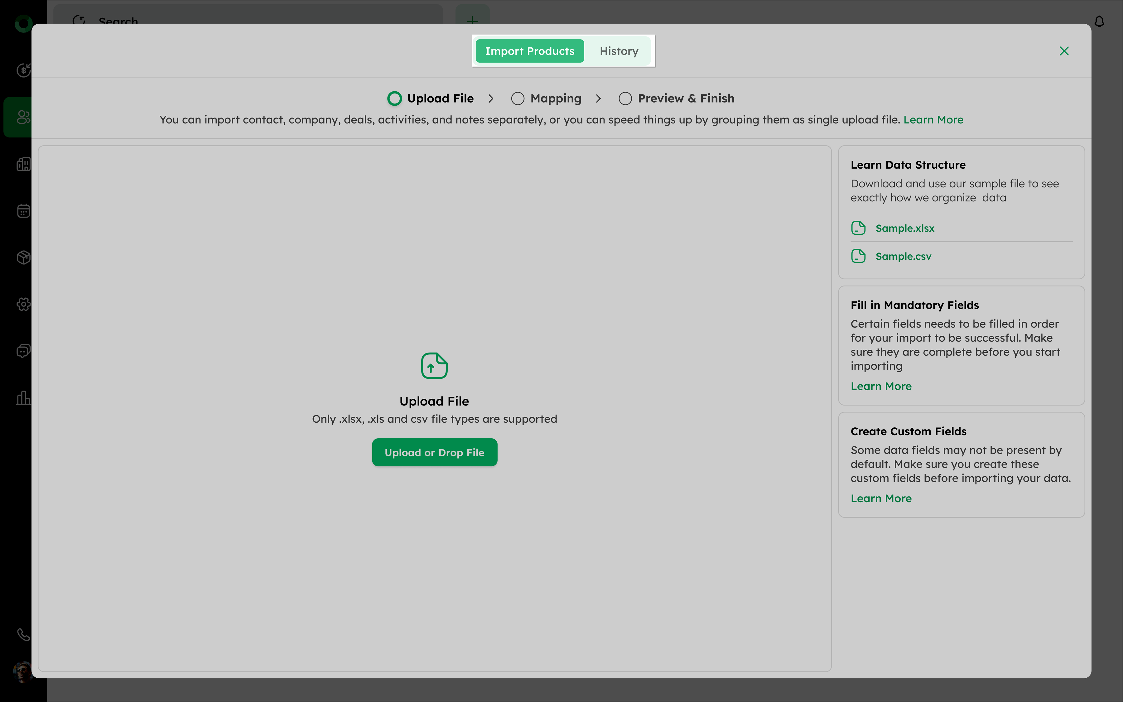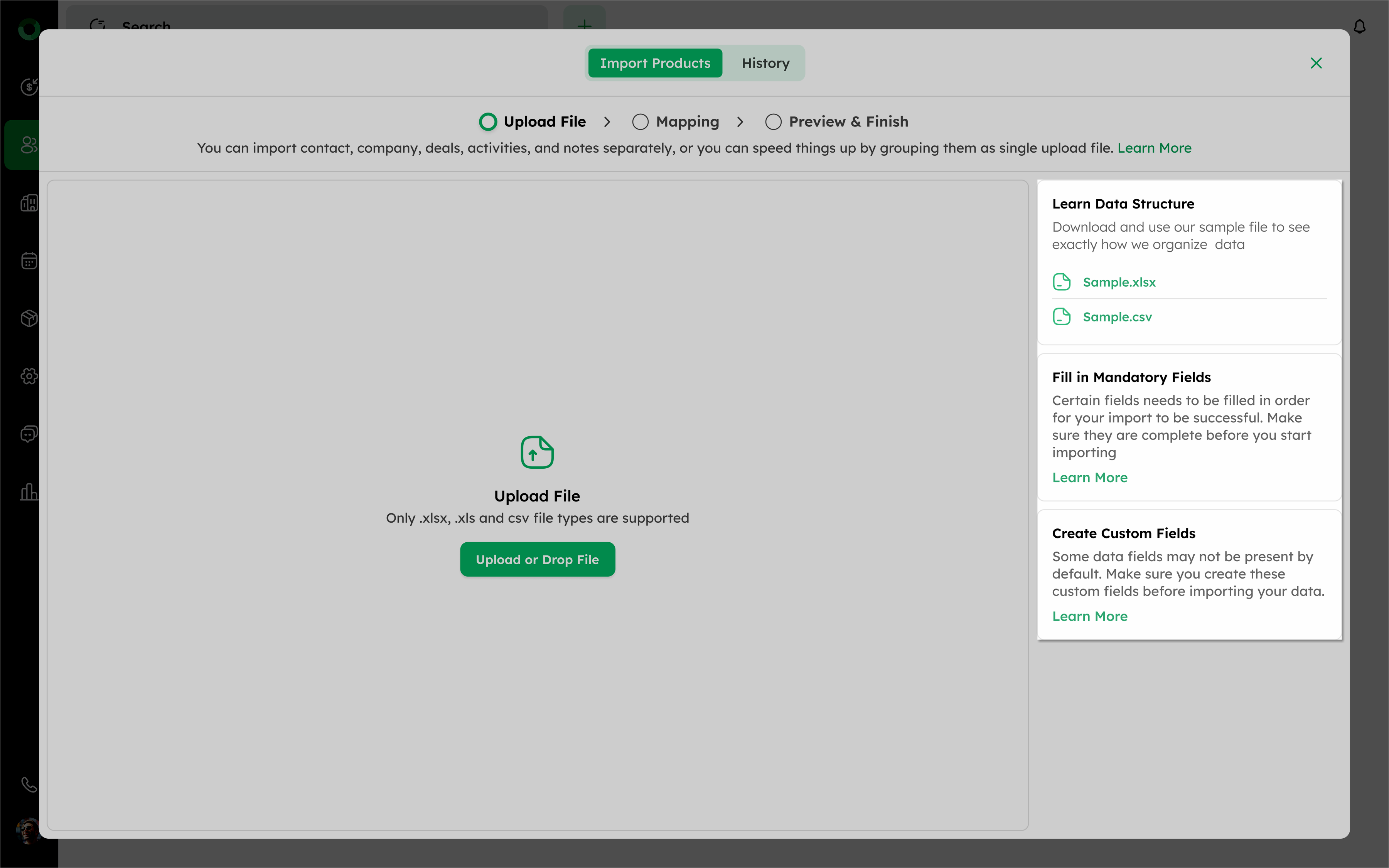 | Missing Mandatory Fields | Required fields from modules such as the Contact Module, Company Module, Activity Module, Deal Module, and any mandatory Custom Fields are empty. |