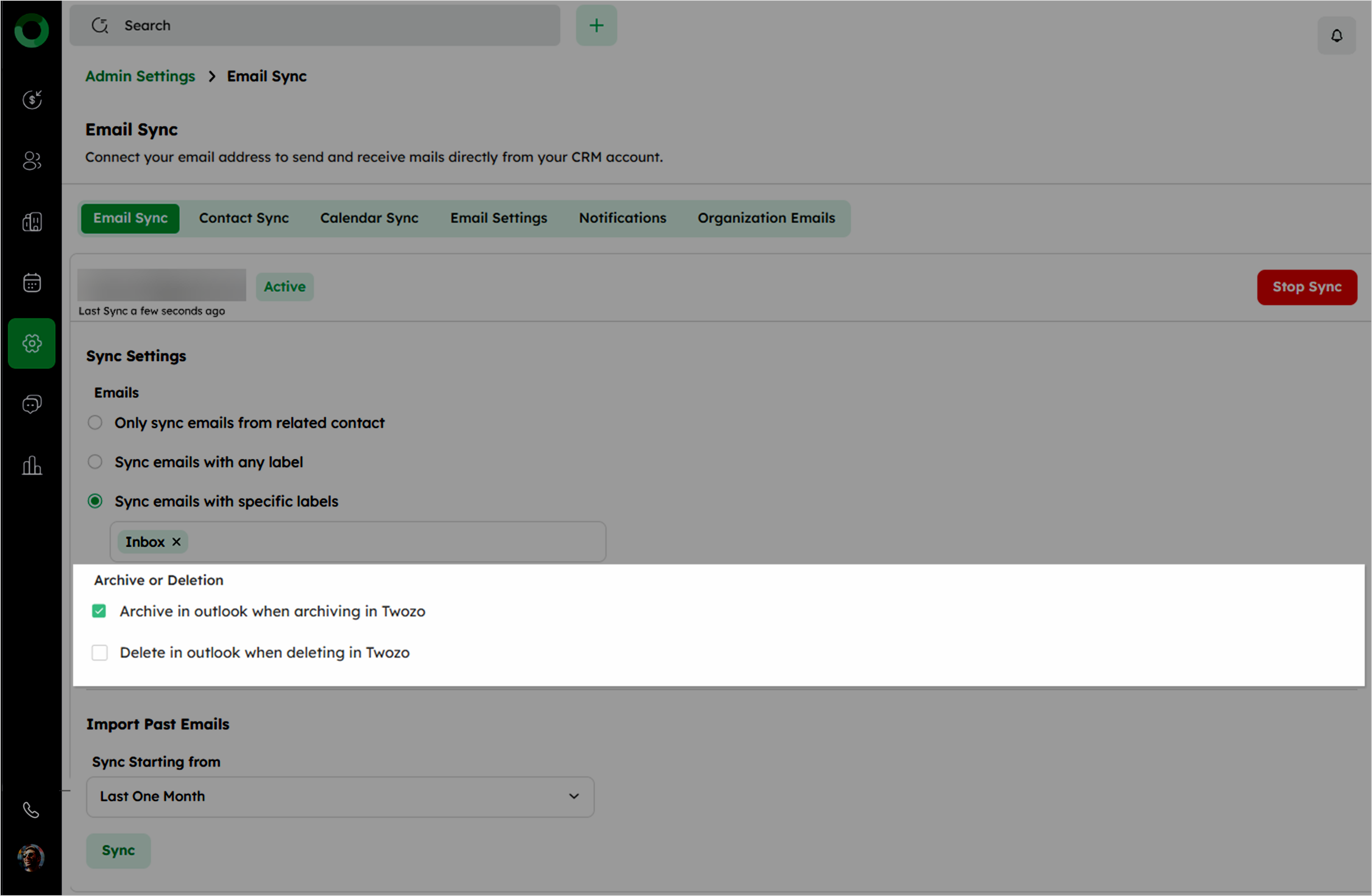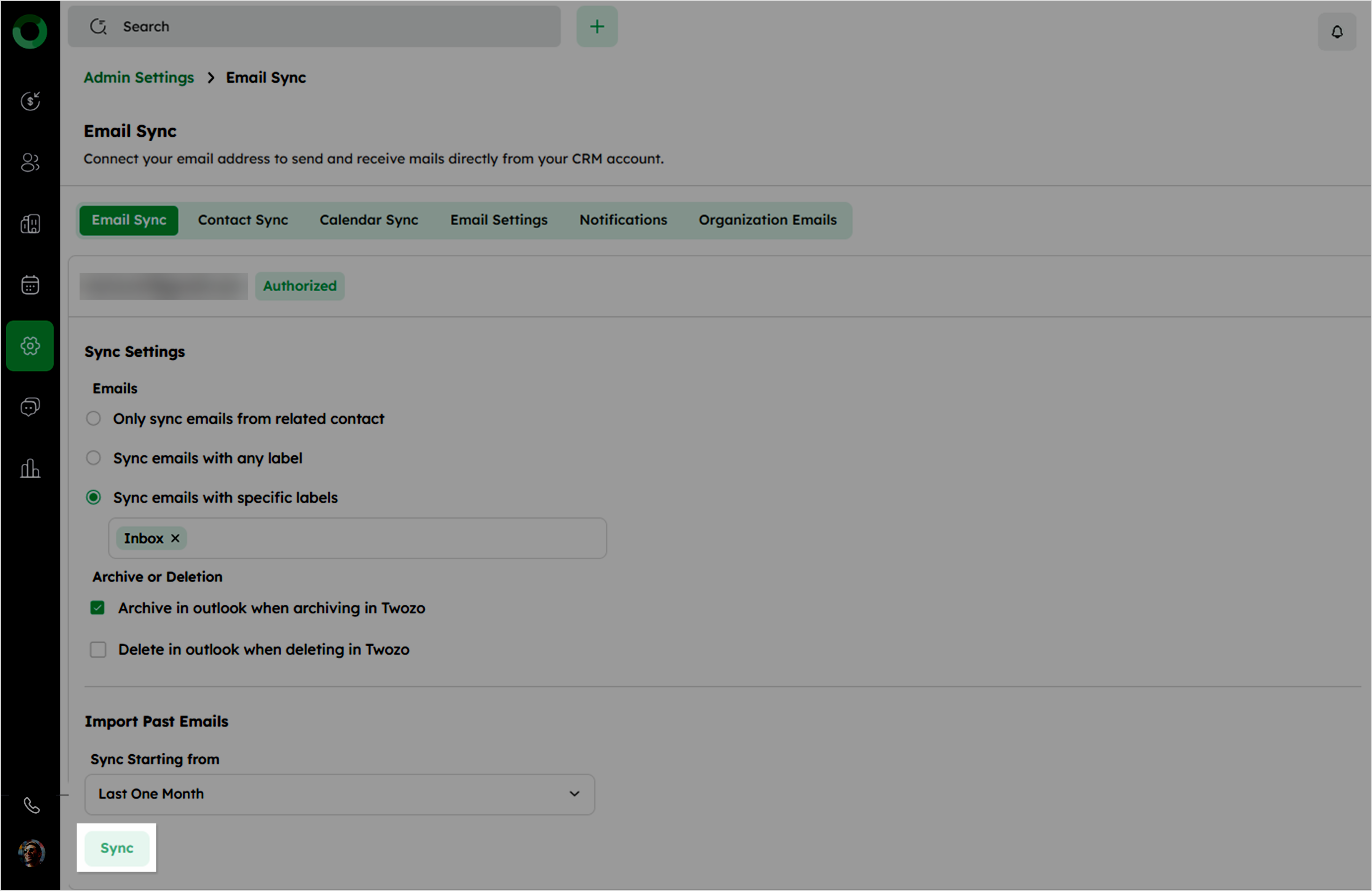 Only sync emails from related contact: Sync only emails linked to contacts in Twozo.