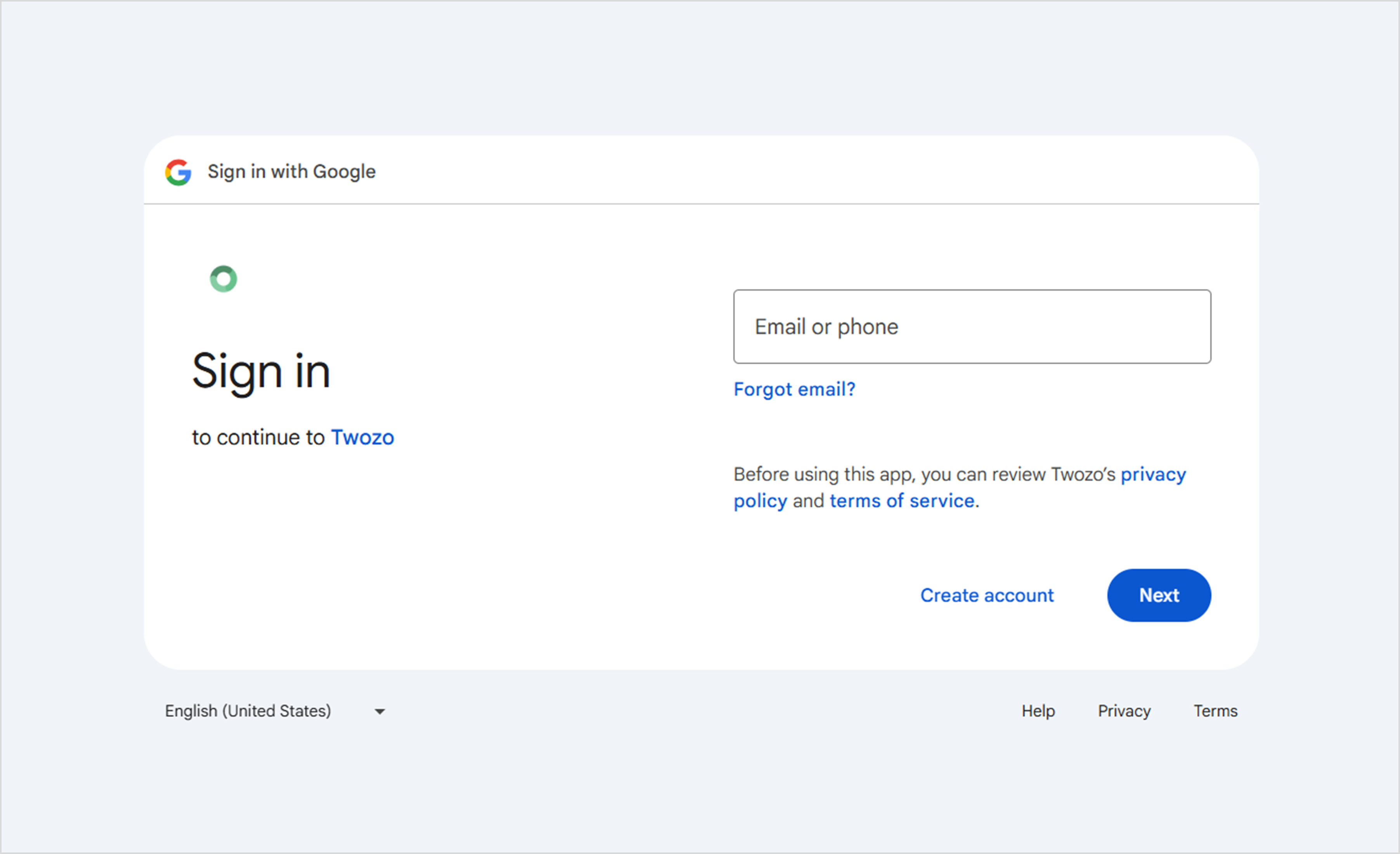 Twozo’s email permissions must be checked to enable the sync process. If not selected, the connection will not take place.