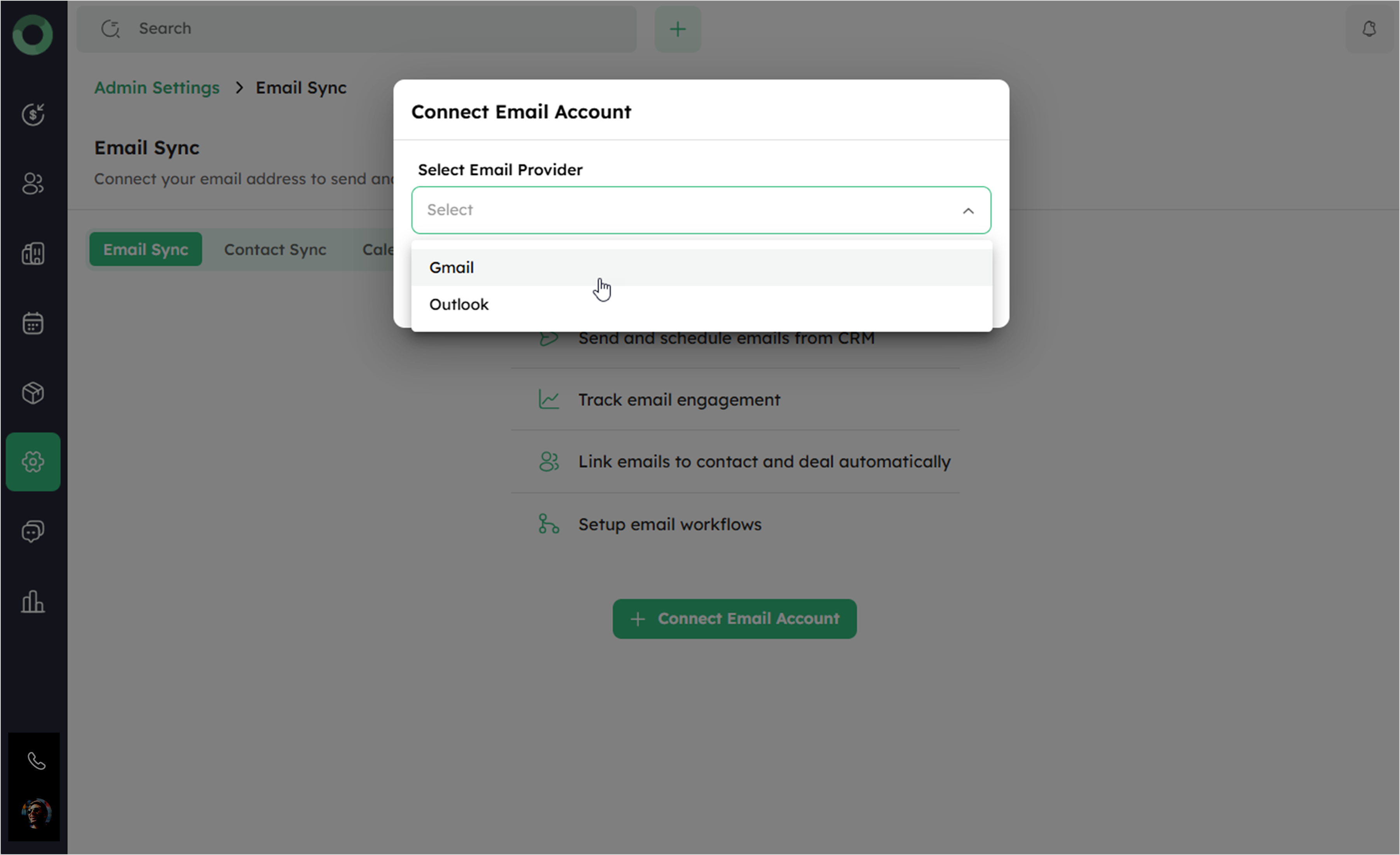- Select your email provider either Gmail or Outlook from the dropdown menu and click Connect.