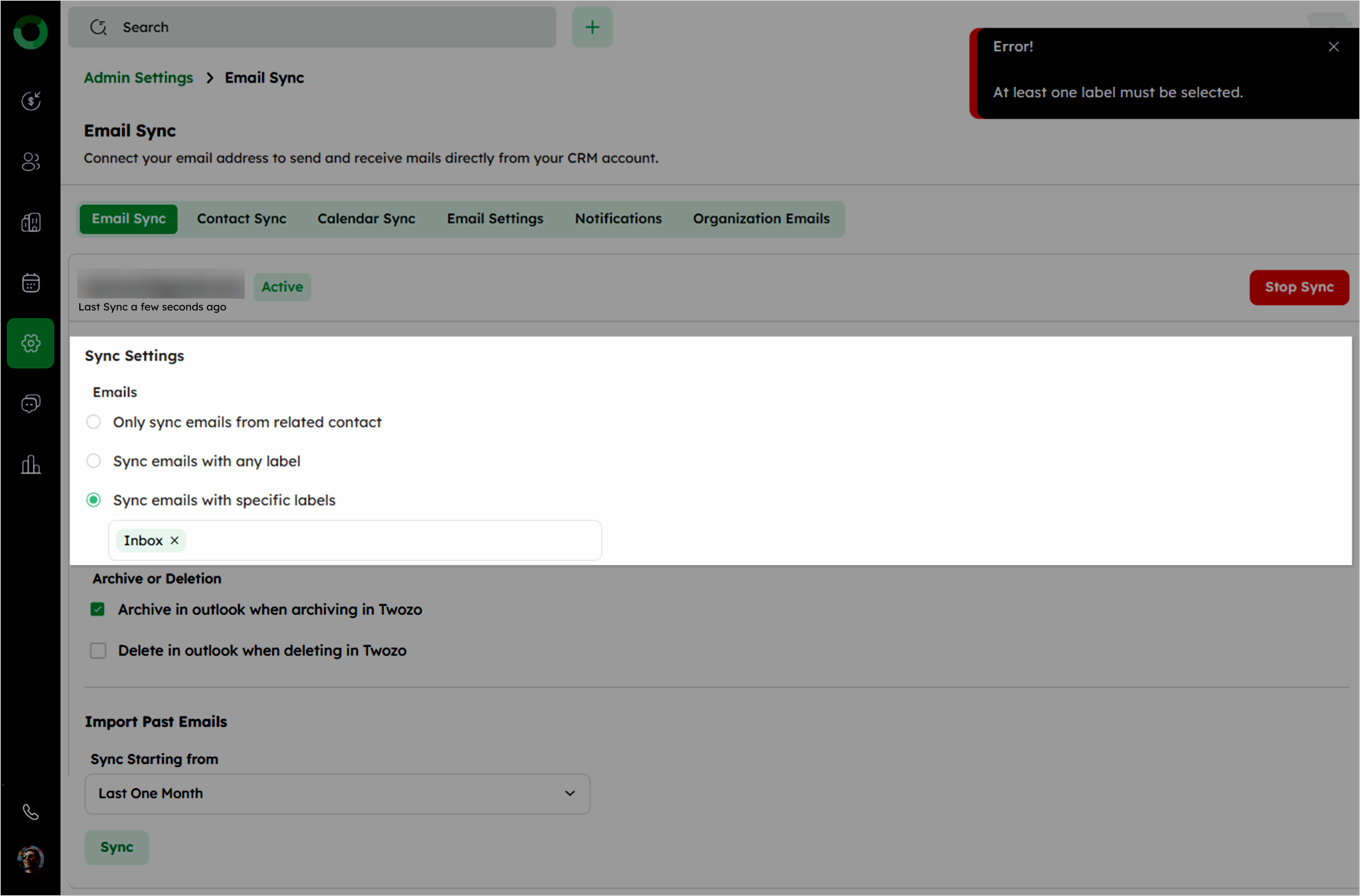 Sync emails with specific labels: Choose labels like Inbox, Sent, Archive, or Draft.