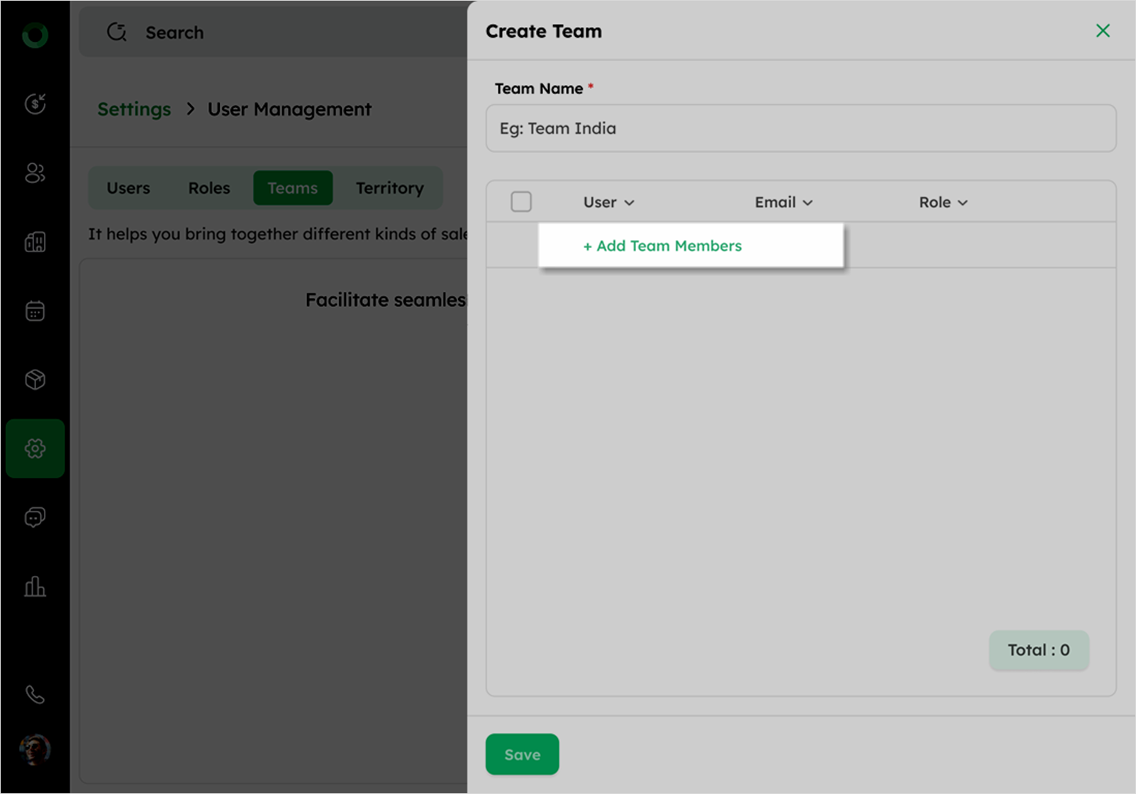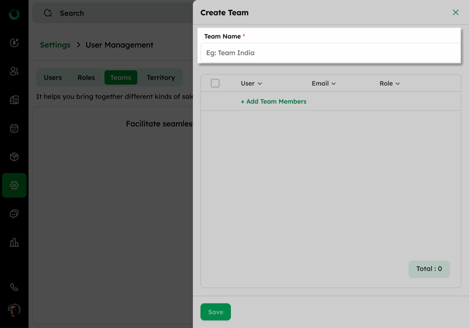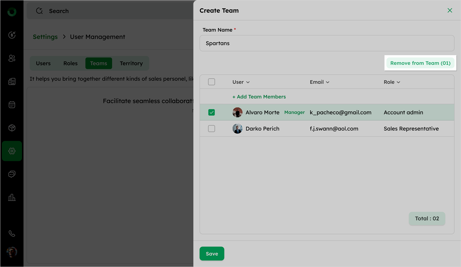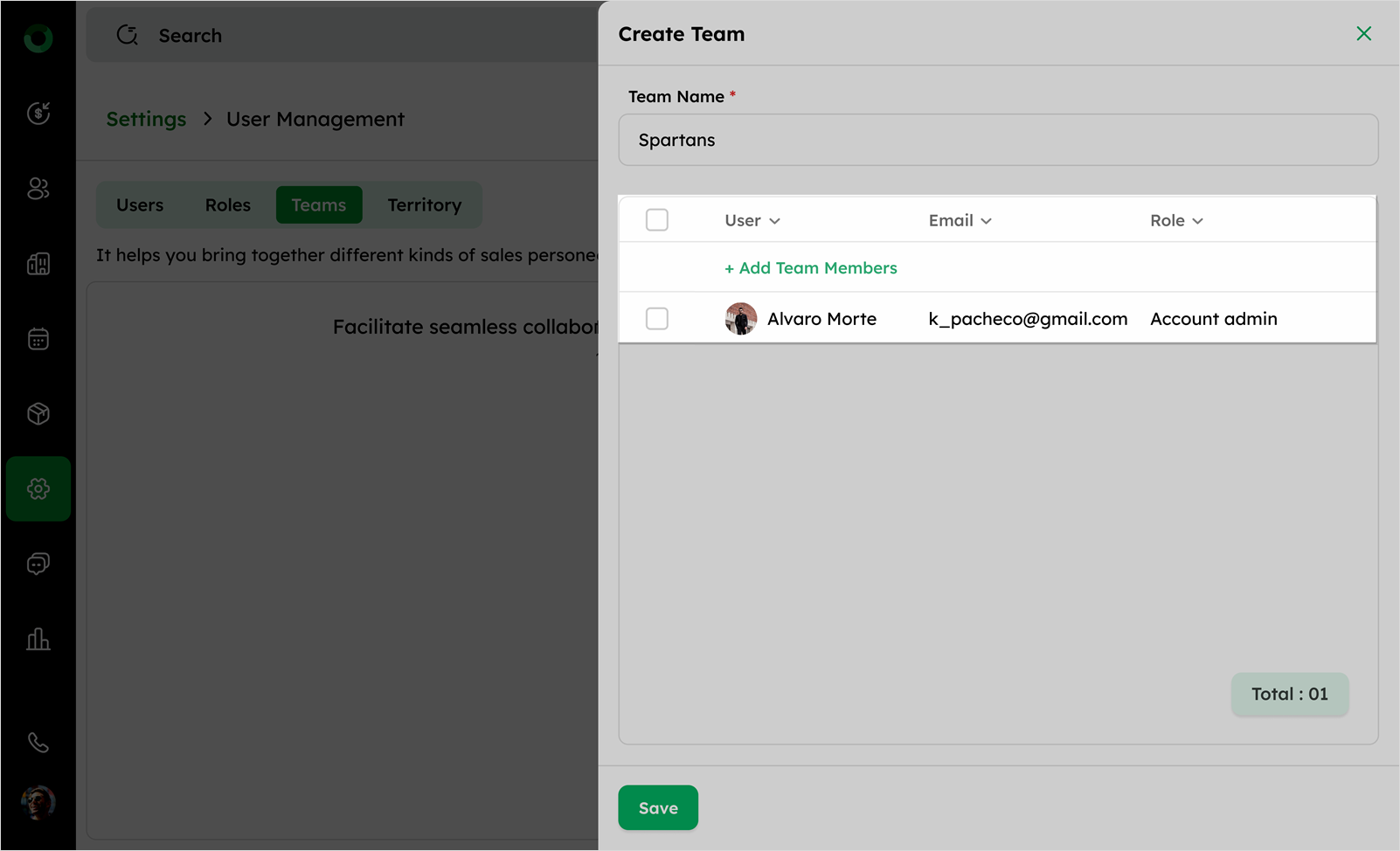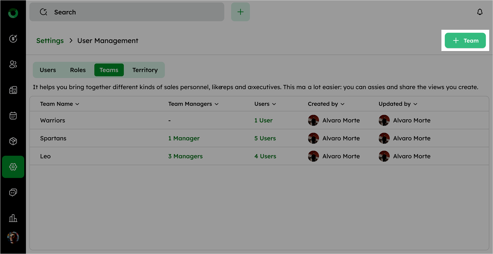 Use the Teams feature to group sales personnel for better collaboration. Teams help organize users based on roles and responsibilities, enabling for better territory assignment and view sharing.